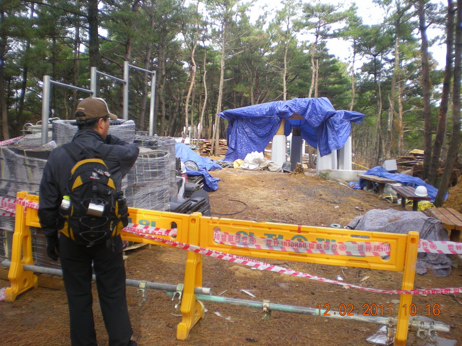 미륵불 주변에 정자 공사가 한창입니다.