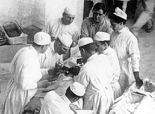 할스테드 손씻기 1차 비누로 손씻기, 할스테드 손씻기 2차 과망간산칼슘(산) 할스테드 손씻기 3차 뜨거운 옥살산 할스테드 손씻기 3차 독성 염화수은 용액 > 수술 전 총 4번의 손씻기에도 불구하고 많은 의료 종사자들이 진행중인 수술.