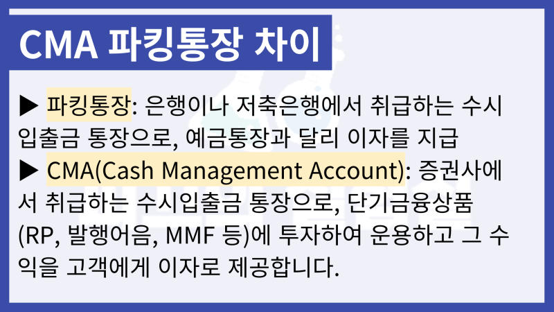 사회에 새로 입문하신 분이나 경제에 막 관심을 가지기 시작하신 분이라면 시간을 내어 실질적인 도움을 받으시길 바랍니다. 1. 주차계좌와 CMA계좌의 차이점